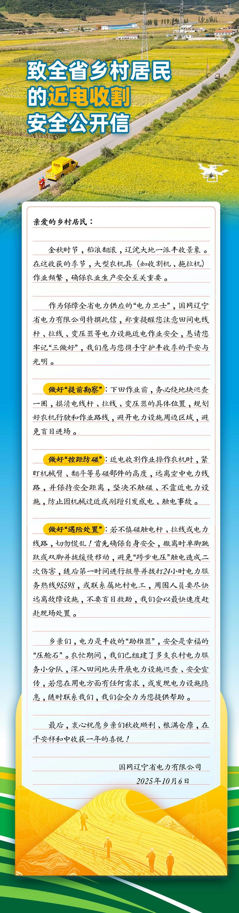 致全省鄉(xiāng)村居民的近電收割安全公開(kāi)信